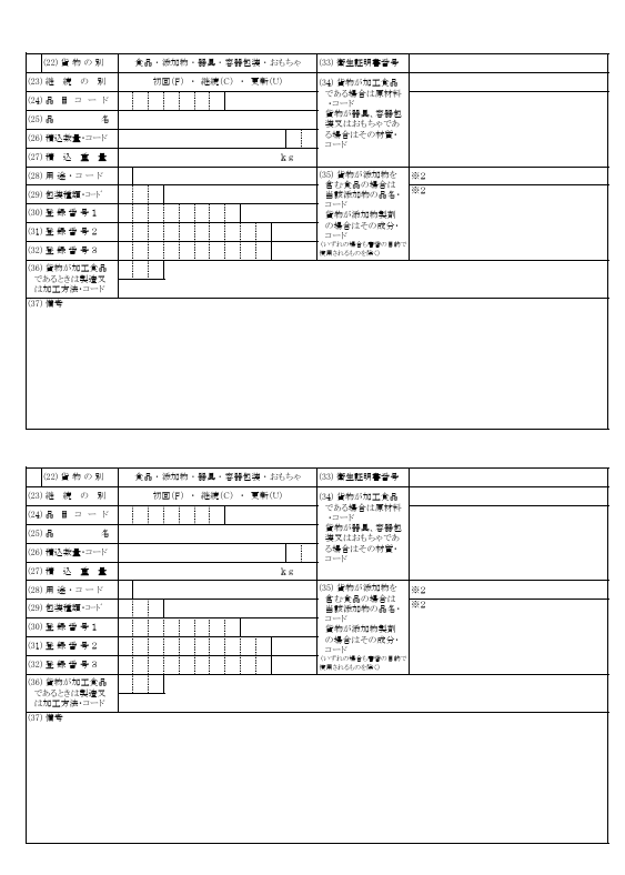 - 衛生証明書の要否
